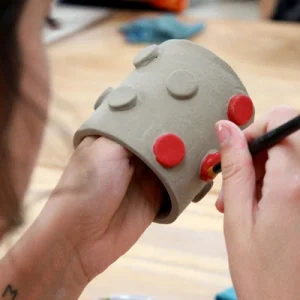 In the afternoon session, the pieces created in the morning are painted with engobes, allowing the relationship between form and decoration to be explored further.