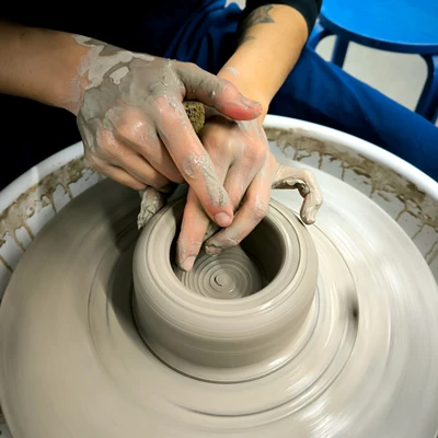 The Intensive Pottery Workshop concentrates the creation and finishing process into a single day, divided into two sessions. In the morning, the work is entirely dedicated to creating pieces on the potter's wheel, with a focus on centering the clay and constructing shapes. In the afternoon session, the work moves on to basic finishing, with special attention to freight.