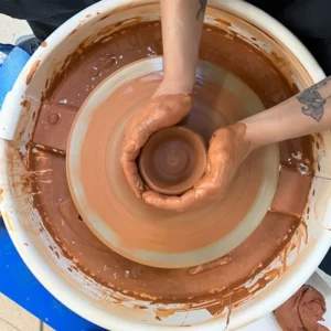 The pottery workshop delves deeper into work on the potter's wheel over three sessions, allowing for more continuous contact with the technique and the ceramic process.